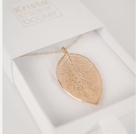 Large Delicate Leaf Necklace - Gold and Silver