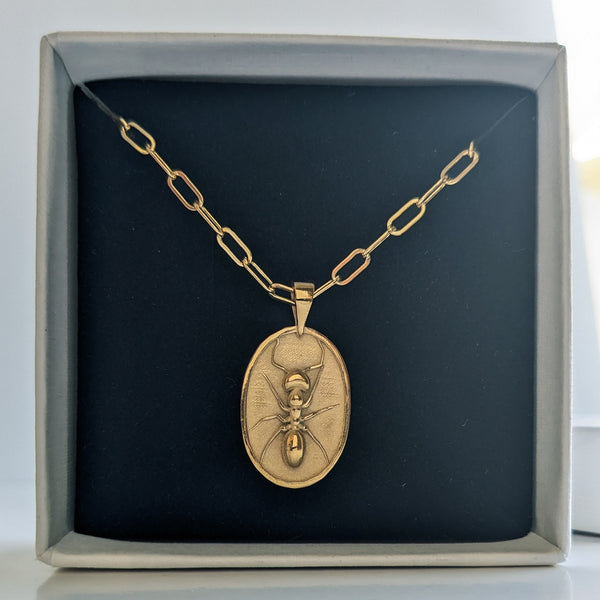 The carpenter ant, known for its industrious nature, represents the idea that a community of small actions can bring about significant change. Each ant contributes to the greater whole, reminding us that even the smallest efforts, when combined, can lead to powerful transformations. The Ant Crest Pendant is a meaningful piece that honors the power of unity and the impact of consistent, collective action.