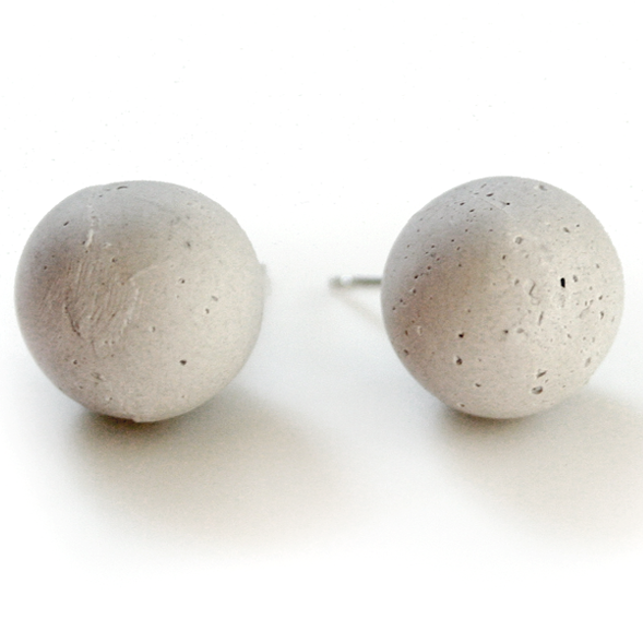 These simple, minimal earrings are hand cast from fine grain concrete, and are a modern twist on classic pearl studs. Sterling silver posts are cast into each earring. The final product is strong, and surprisingly light weight. These are great everyday earrings for the classic lady that you are.