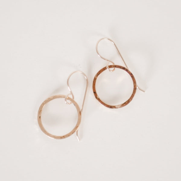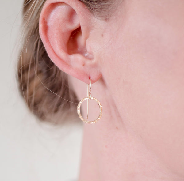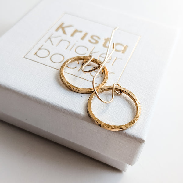 Hammered circles with shiny gold vermeil plating and lots of movement to catch lots of light.