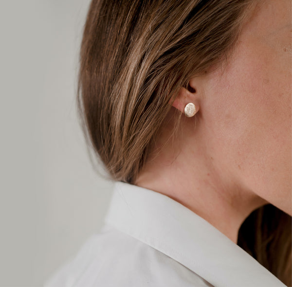 These beautifully textured 14k gold vermeil posts are the perfect everyday earring. They are big enough and thick enough to have a nice presence on the ear, and to catch and reflect the light, while still being light and comfortable to wear. The fused "stardust" texture give these earrings that extra luster and infuse a little personality into your capsule jewelry wardrobe.