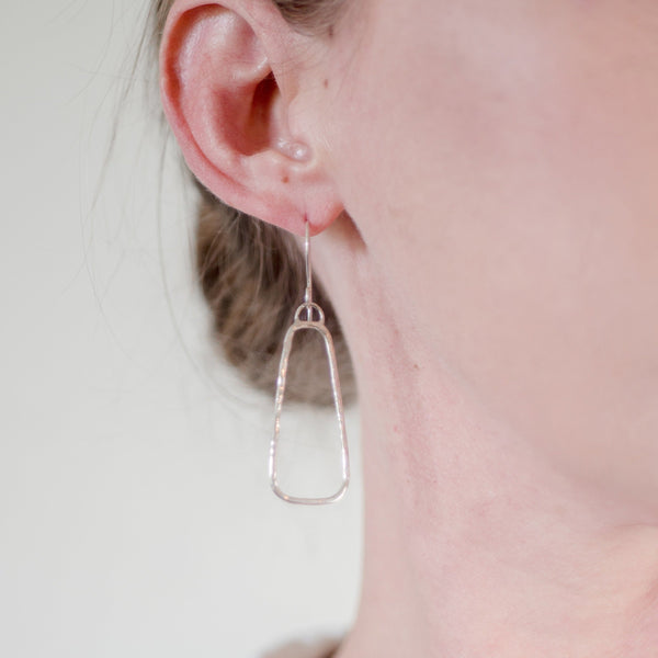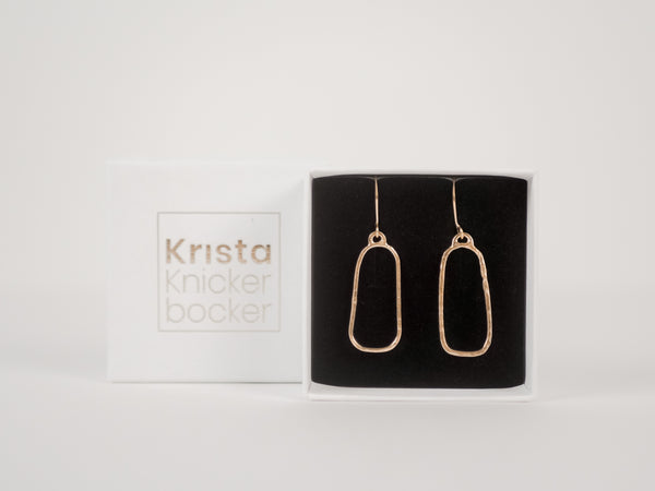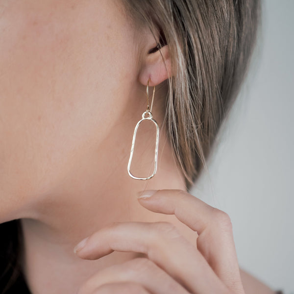 Simple, light, modern and textured elongated hoops. These earrings are so light you'll forget you have them in, but despite their dainty size they have a real sparkle and presence. You can't go wrong with these whimsical, modern, handcrafted hoops!