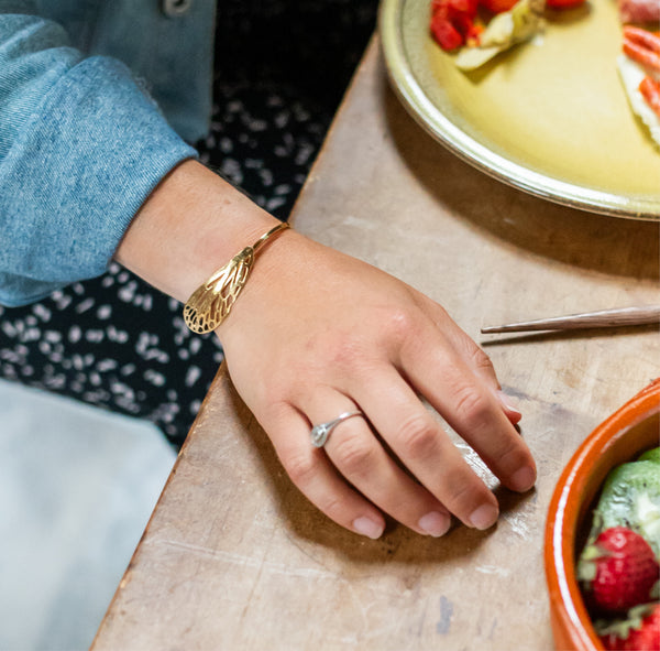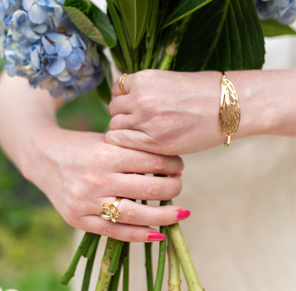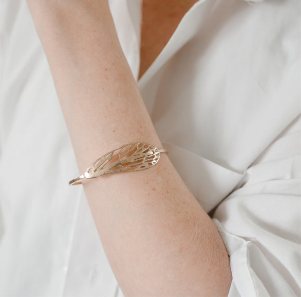 Beautiful 14k Vermeil or Sterling Silver dragonfly wing cuff bracelet.  Light catching, modern, timeless, delicate and sweet, this cuff is an easy way to add poetry and nature to your days.
