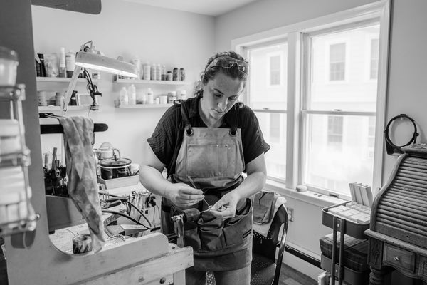 I received my design education through the lens of architecture, and for years I worked as an architect in and around Boston. During this time, I found myself taking jewelry making courses and experimenting with jewelry and object design methods in my spare time. I was drawn to the unique challenges and opportunities that designing on such a small scale offers. From concrete design, to metalsmithing, to 3d fabrication, I love the magic of taking a material from its raw form and turning it into something meaningful, beautiful, and unexpected.