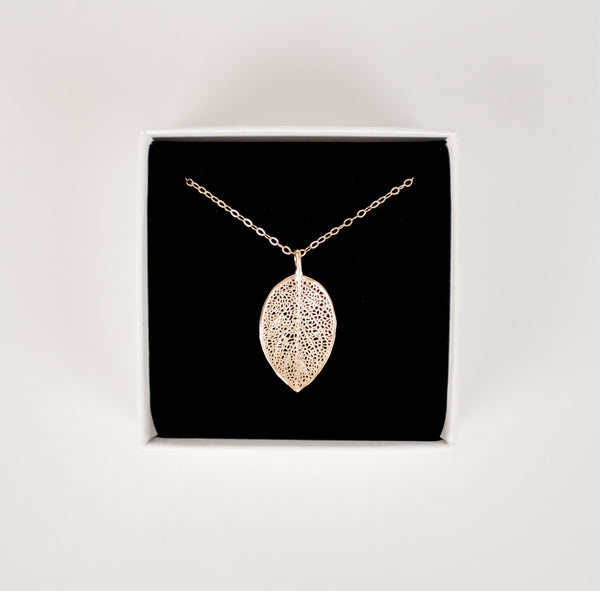 - This leaf hangs from an 18 inch sterling silver or gold filled chain.