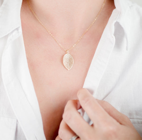 Small Delicate Leaf Necklace - Gold or Silver